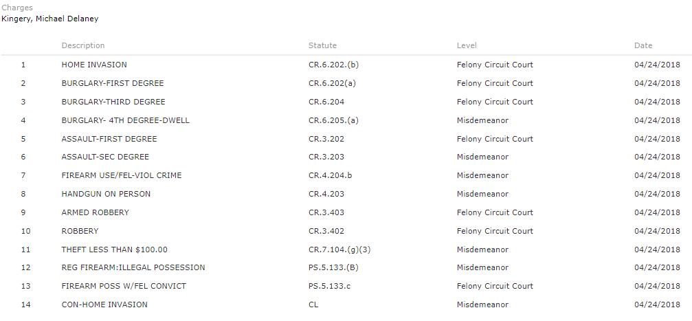 - On April 18, 2018, court records show that Kingery was released from jail, just a few days before he allegedly committed the armed robbery and home invasion on April 24, 2018.