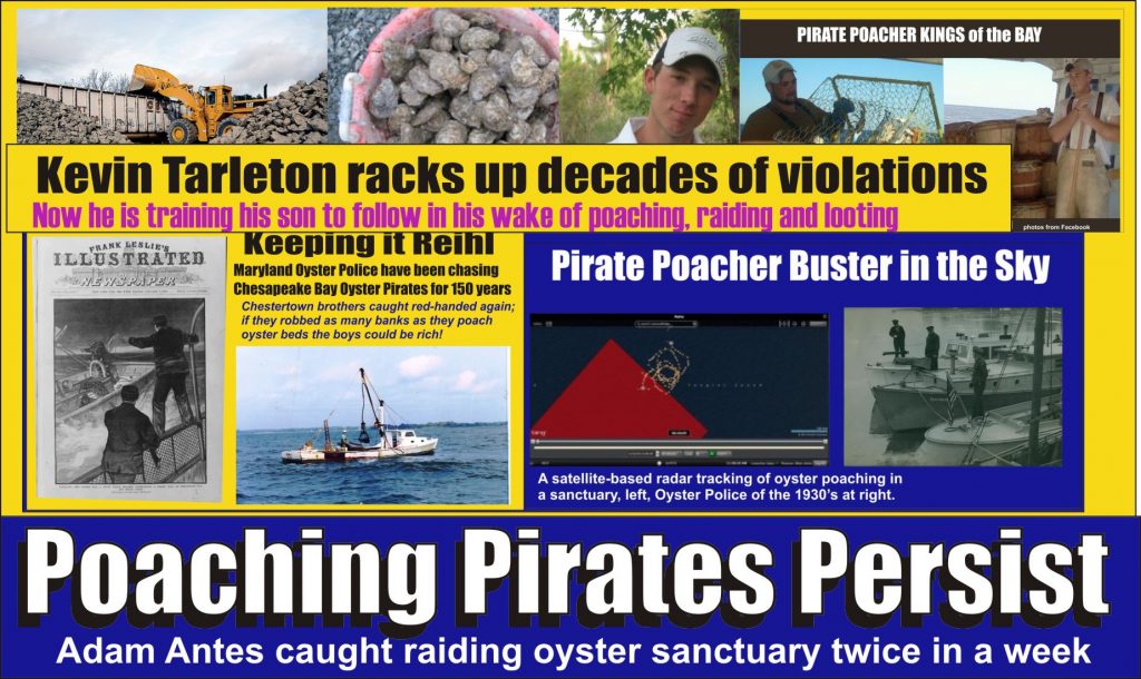 - Pirate Poachers of the Chesapeake: Adam Antes busted again for raid on oyster sanctuary; Kevin Tarleton has decades of deception as he loots the Bay (50)
