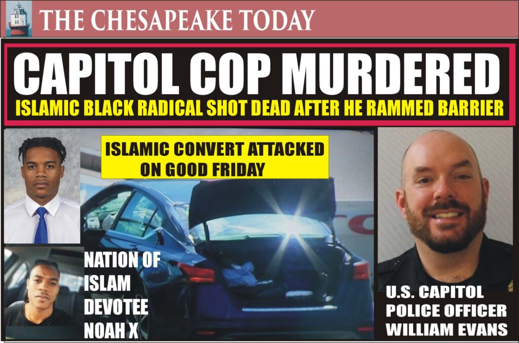 ISLAMIC BLACK RADICAL ATTACK ON U.S. CAPITOL: Officer William Evans killed when Noah Green ran into two cops as he roared towards Capitol, rammed into the barrier; charged officers with large knife