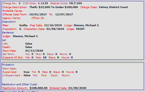Restitution Amount: $198,000