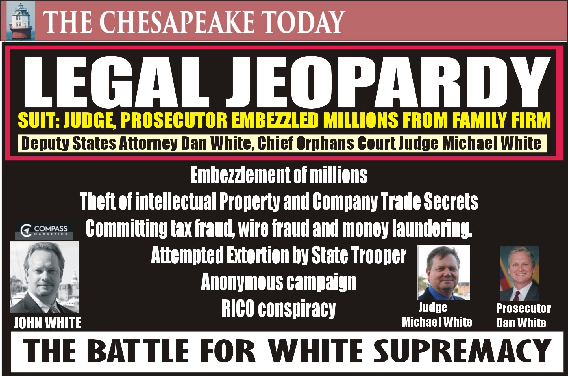 Is it really a crime for Maryland Judge Michael White, Chief Judge of the St. Mary’s Orphans Court, to sign his name to a check drawn on an account that involves allegedly embezzled funds from a company when the check is made payable to his brother, Daniel White, an assistant state attorney in St. Mary’s County and states on the face of the check that the funds are intended for James “Chip” DiPaula, the former head of the University of Maryland Medical Systems and Chief of Staff for Maryland Governor Robert Ehrlich? Was the check for $65,000 used for paying the IRS in order to have a federal tax lien against Daniel and Kelly White released?