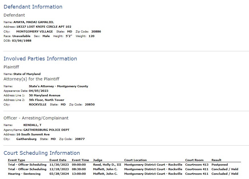 The Circuit Court for Montgomery County convicted Amaya on Aug. 11, 2009, for the offense of rape in the second degree and sentenced him to 10 years in prison followed by three years of supervised probation. The court then suspended two years and six months of the prison sentence.