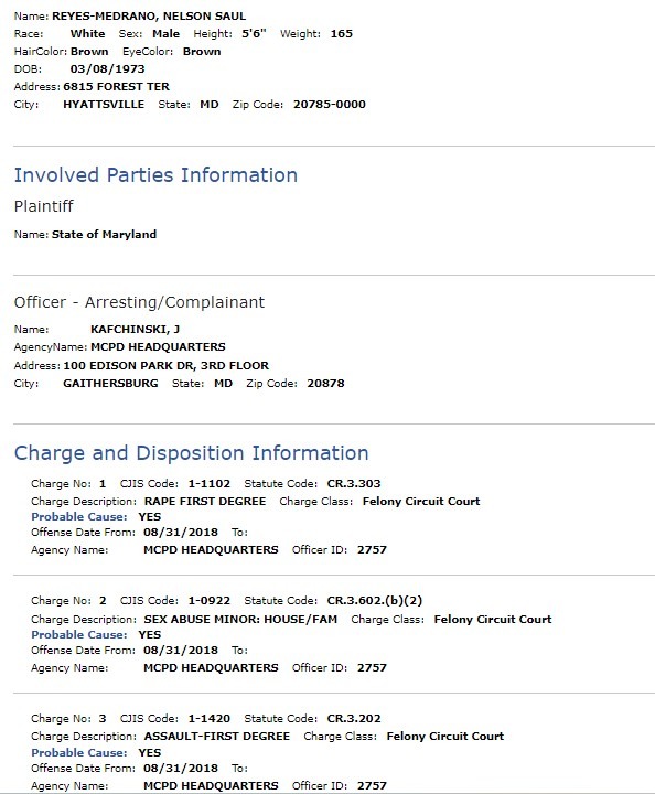 Nelson Saul Reyes-Medrano, 46, is illegally in the United States from El Salvador. Reyes-Medrano is alleged to have crawled into the bed of a 16-year-old girl in Germantown in August 2018 while she was taking a nap and placed a knife against her throat before proceeding to rape her, according to authorities. He was found not guilty on March 12, 2020.