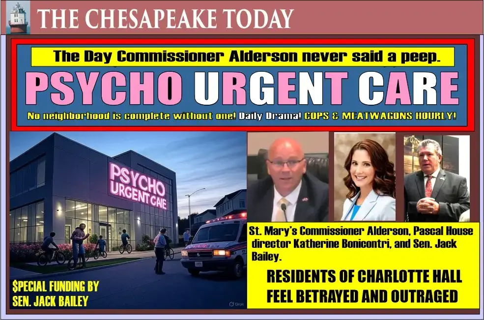 CHARLOTTE HALL, MD – Senator Jack Bailey (R, Calvert, St. Mary’s) is prominent among those lawmakers who have been aligned with the seemingly inevitable insertion of a mental health crisis center into a residential neighborhood located on Mount Wolf Road in Charlotte Hall. A hearing held on April 29, 2025, brought out a large crowd in opposition to the mental health crisis center being rammed through by inept politicians and placed in a stable residential community.