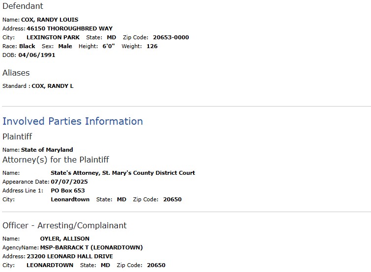MD RT 4 @ COX ROAD – CALVERT – 04 Arrested: TAYLOR 3RD, EDWARD